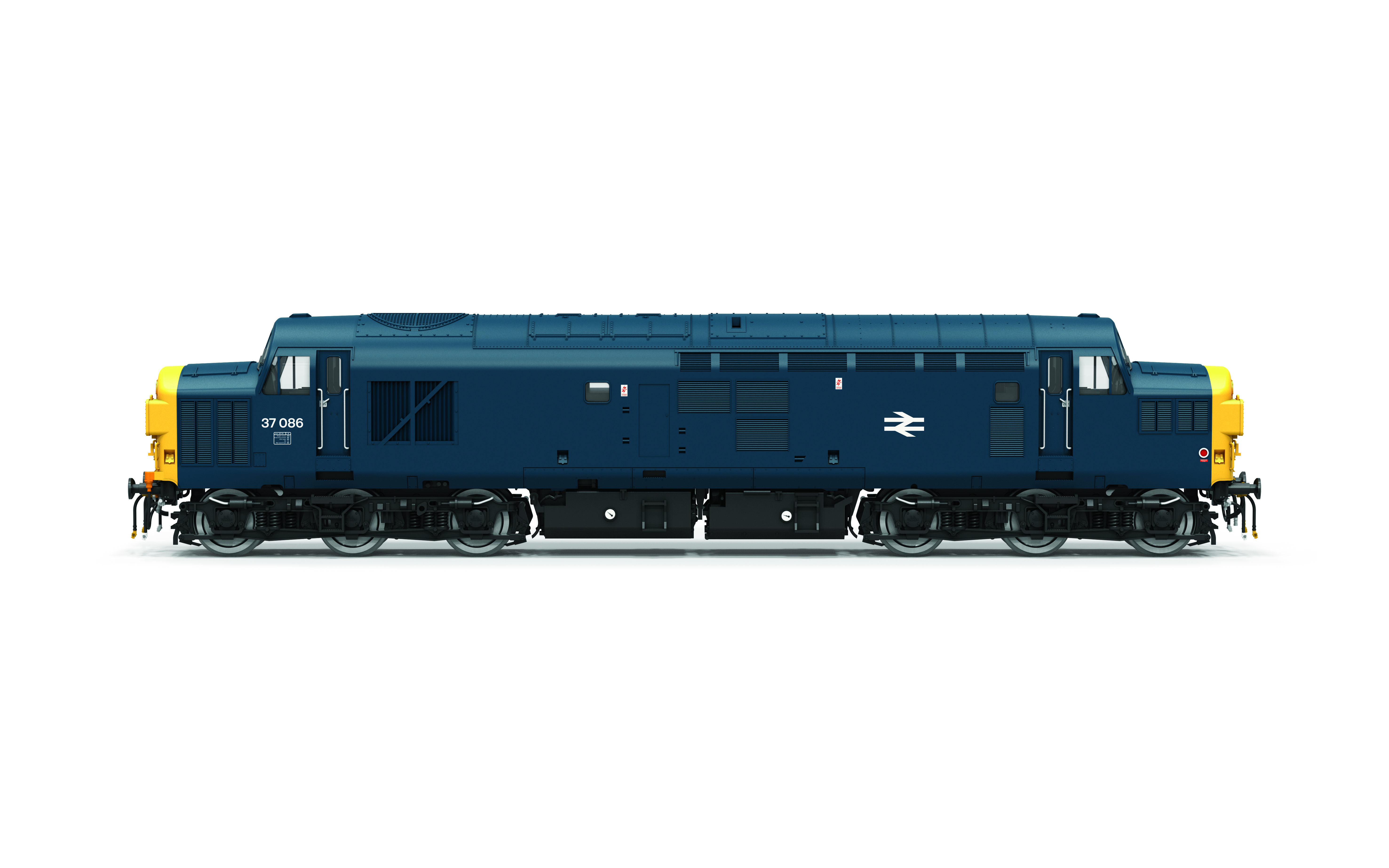Originally known as the English Electric Type 3, the class was ordered as part of BR’s modernisation plan, with 225 examples built at its Vulcan Foundry Works and 84 at its subsidiary, Robert Stephenson & Hawthorns. Designed for freight work and also secondary passenger routes, all 309 were introduced between 1960 and 1965. No. 37086 entered service at Gateshead in December 1962 as green-liveried D6786. It was later painted blue with full yellow noses and given the number 37086 under TOPS in February 1974, the condition in which the model is presented. It would later receive modifications and be renumber 37516 in the sub-class 37/5 in 1985. It is still in operation with West Coast Railways.