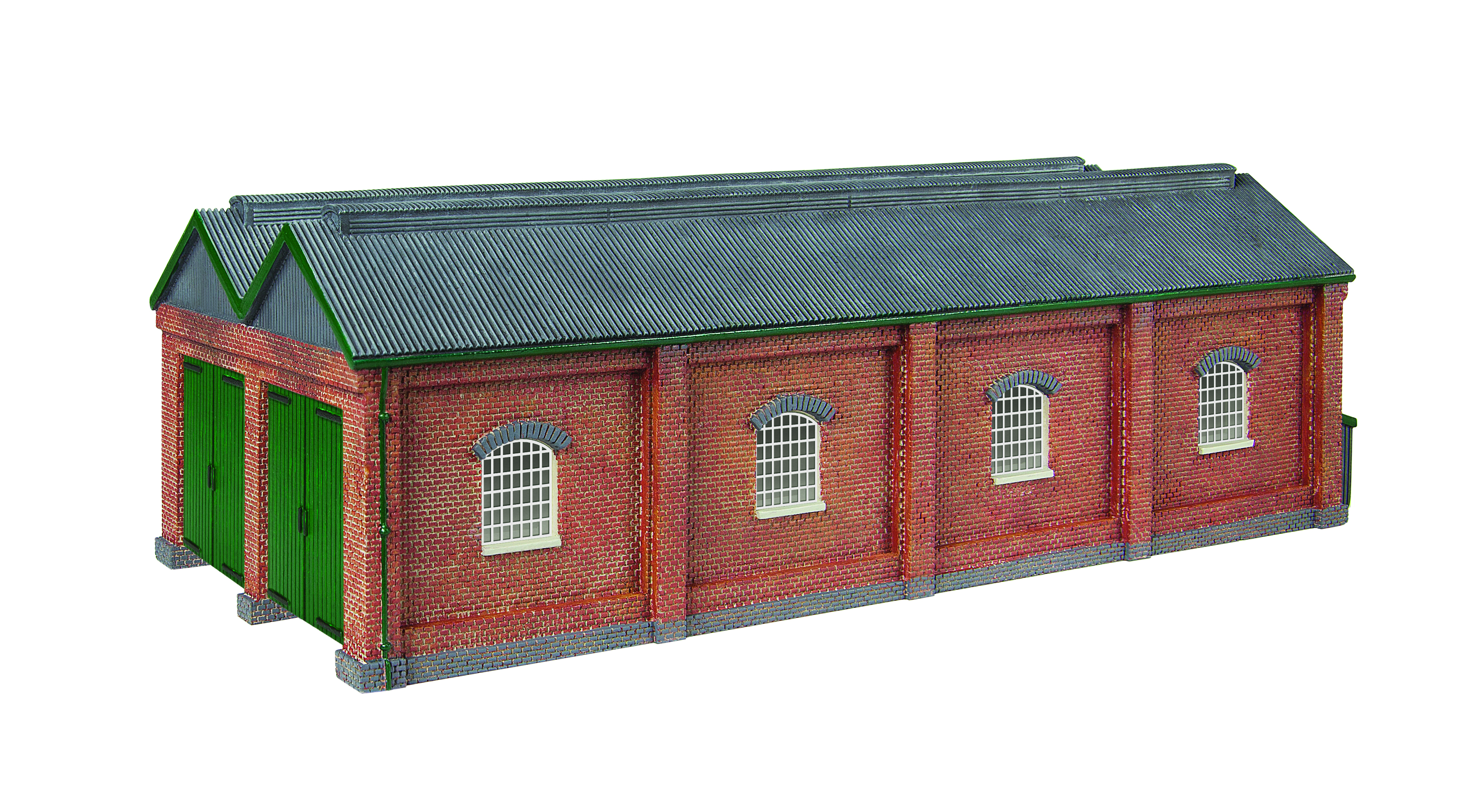 This Red Brick Collection Double Engine Shed unit is crafted in TT:120 scale, and is perfect for creating authentic railway maintenance scenes. Made from resin and hand-decorated, featuring realistic brickwork details, it provides ample space for housing off-duty locomotives.