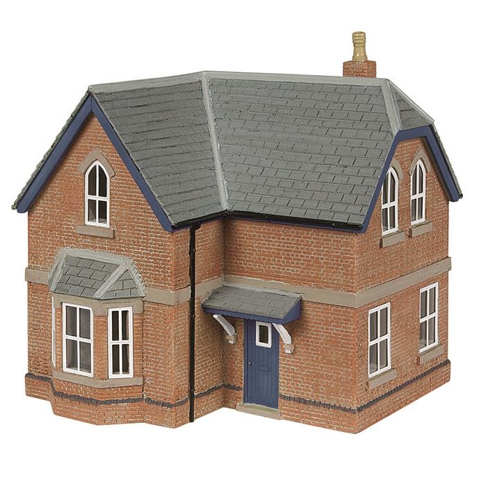 This Railway House with blue trim and doors from Scenecraft is representative of a typical residence found close to the railway. This model could be placed on any layout depicting a country location such as near a branch line, or even to contrast newer buildings on a layout depicting an area where a more modern town has grown to overtake the surrounding areas.