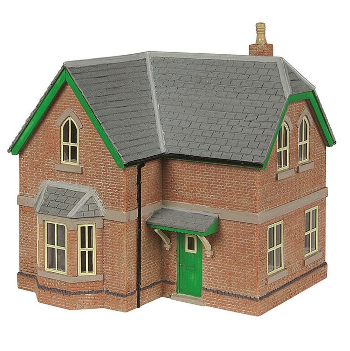 This Railway House with blue trim and doors from Scenecraft is representative of a typical residence found close to the railway. This model could be placed on any layout depicting a country location such as near a branch line, or even to contrast newer buildings on a layout depicting an area where a more modern town has grown to overtake the surrounding areas.