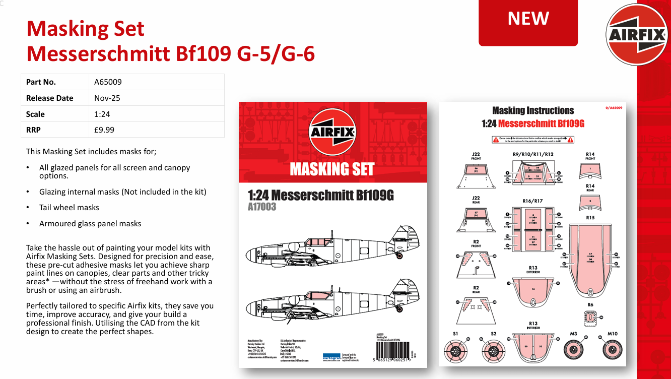 A65009 Airfix Masking Set - Messerschmitt Bf109G (A17003) - 1:24