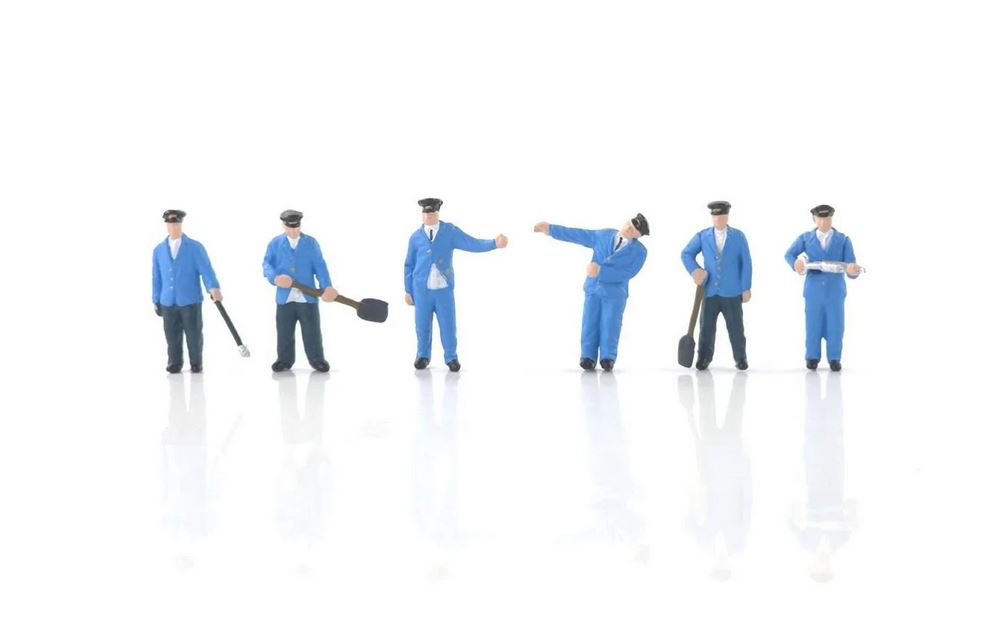 Pack of 6 Painted figures produced as 1:76 scale models. These models are produced by Gaugemaster and look great on any 1:76 scale model railway or scenic diorama.