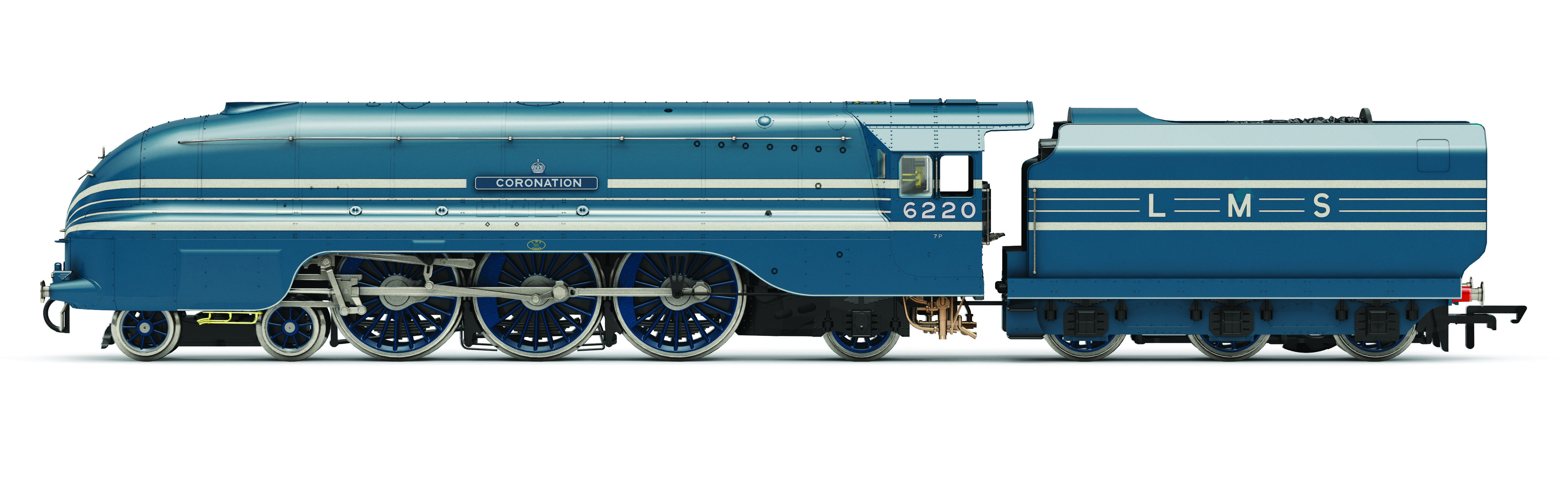 The ‘Princess Coronation’ Class, also known as the ‘Duchess’ Class, was an enlarged and improved version of William Stanier’s successful ‘Princess Royal’ Class ‘Pacific’. The first ten class members emerged from Crewe Works in a streamlined form during 1937 and five of these were put aside specifically for hauling the prestigious ‘Coronation Scot’ between London Euston and Glasgow Central. These were painted in Caledonian blue and had silver horizontal lining, which matched the carriages they pulled.
