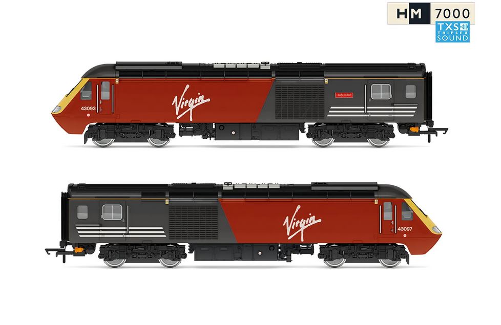 This Virgin Class 43 HST "Lady in Red' Train Pack brings the bold red branding of Virgin to your model railway layout, ensuring an eye-catching visual as it charges round the track. This OO model locomotive pack features NEM tension lock couplings and is ready-fited with HM7000 sound control, giving you a digital model railway experience.