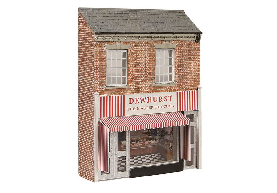 Butchers have long been a familiar sight on the streets of Great Britain and Dewhurst – the master butcher is your one stop shop for all of your meat requirements, from everyday cuts to pieces that could only be prepared by a butchery extraordinaire. Featuring etched metal windows and doors, the clear glazing gives way to a tempting view of the counter and some of today’s freshest offerings. Crafted in low relief, this model is great for creating a backdrop to any layout or diorama in minimal space and can be combined with other low relief models in the Scenecraft range to create a complete street scene.