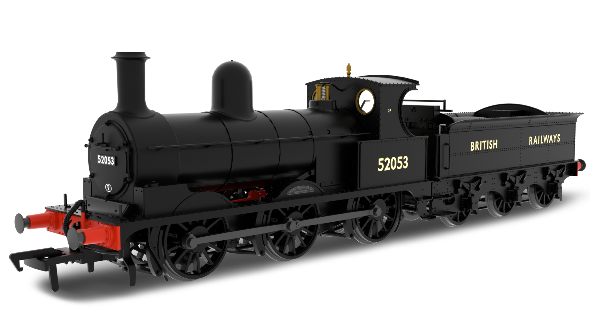 Lancashire & Yorkshire Railway Class 25 No. 52053 British Railways (sans serif) Livery LMS Style Smokebox Door 3 Piece Boiler Handrail Ramsbottom Safety Valves Coreless motor with flywheel 21 pin decoder socket in tender Large tender mounted speaker MoPower stay-alive fitted. Plunger loco pickups Tender wheel bearing pickups Dynamic firebox flicker NEM pockets front and rear Suitable for operation on 2nd radius curves (438mm or greater)
