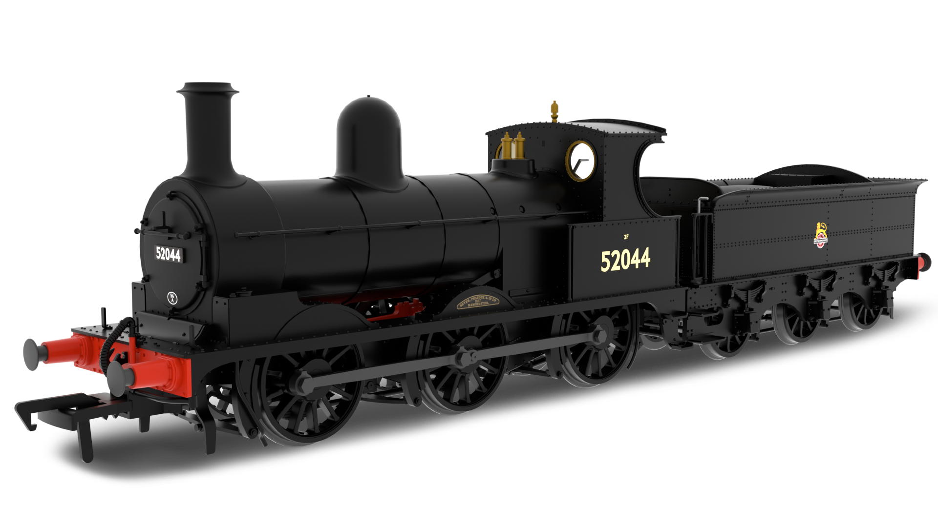 Lancashire & Yorkshire Railway Class 25 No. 52044 BR Early Crest (as preserved) LMS Style Smokebox Door 3 Piece Boiler Handrail Ross Pop Safety Valves Coreless motor with flywheel 21 pin decoder socket in tender Large tender mounted speaker MoPower stay-alive fitted. Plunger loco pickups Tender wheel bearing pickups Dynamic firebox flicker NEM pockets front and rear Suitable for operation on 2nd radius curves (438mm or greater)
